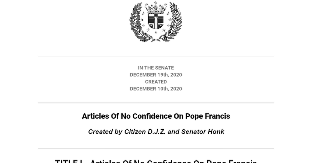 - Wait.... We had confidence with Pope in the first place?